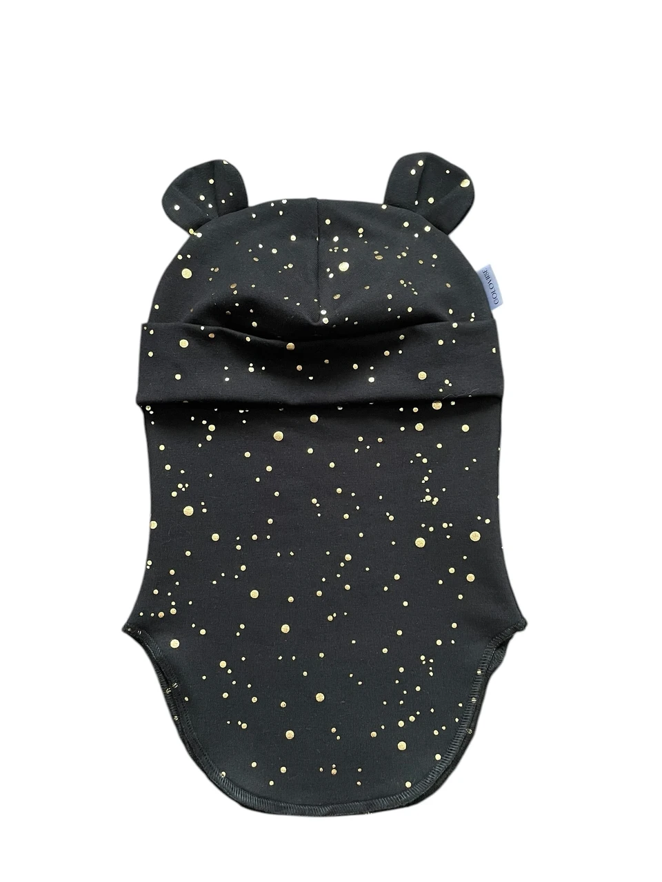 Hall, kuldsete täppide ja fliisvoodriga tuukrimüts.